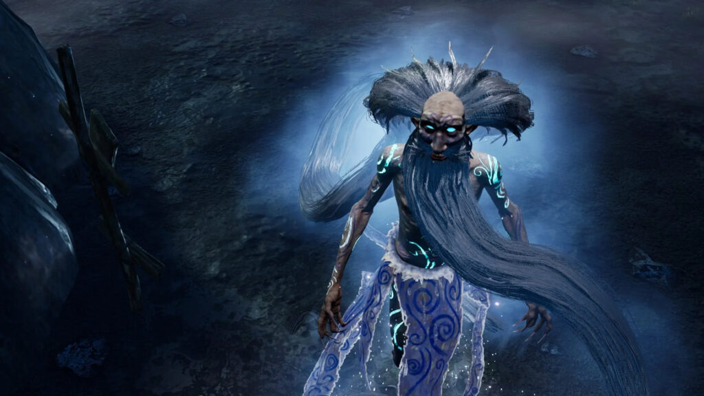 I can share an example from GORD. It’s also related to the Mimic character because any other game character might become his victim, whether it’s a warrior, a fisherman, a man, a woman, or even a child. So we had to implement the sacrifice animation as a procedural generation so it works with any geometry. We combined several techniques to achieve the result we targeted. We made a shader function to reflect the cracks and the effect of freezing. We managed to integrate it into the character’s material so it works correctly with any body shape.
