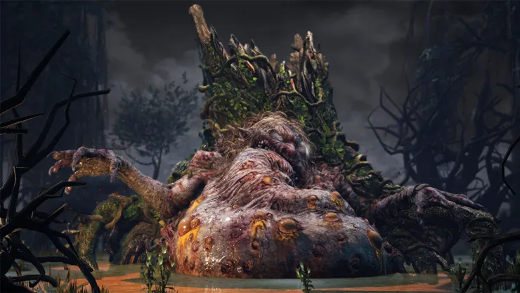 Since the monster’s body is basically swamp and clay, in order to implement the morphing, we decided to mask its appearance through splashes of clay and slime. The morphing occurs in several stages. At first, there is a surge with an animation of a disappearing resource that the player is targeting. Then a slurry spreads around its remains. After that, this slurry begins to morph into a single pile and form Mimic’s body. That’s exactly where we used VAX.