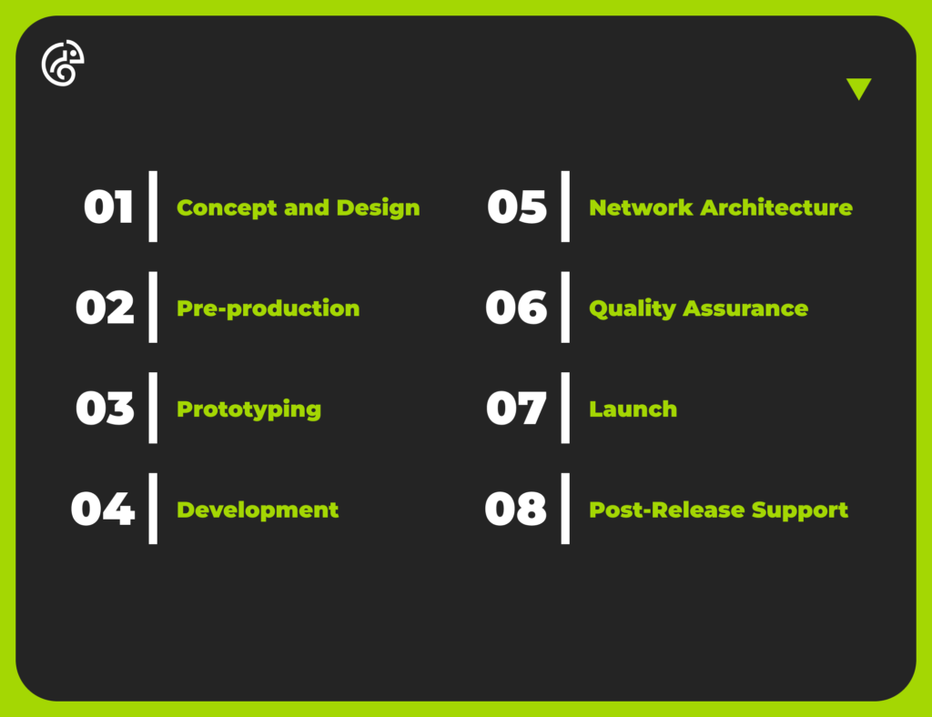 Making a multiplayer game is a step-by-step journey that builds the game from the ground up. It starts with a simple idea and keeps growing even after it’s released, with regular updates. Let’s walk through the key stages that go into making a fun online multiplayer game (note that developing any multiplayer game is an agile process that can be changed):